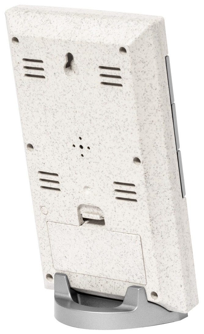 Ekologické plastové digitální hodiny a meteostanice z pšeničné slámy s teploměrem a ukazatelem vlhkosti. Funguje na 2 baterie AAA, bez baterií.