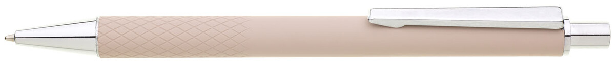 Elegantní propiska s hnědým pogumovaným tělem v moderním odstínu  a chromovými doplňky. Náplň X20 modře píšící. Kolekce DESIGN.