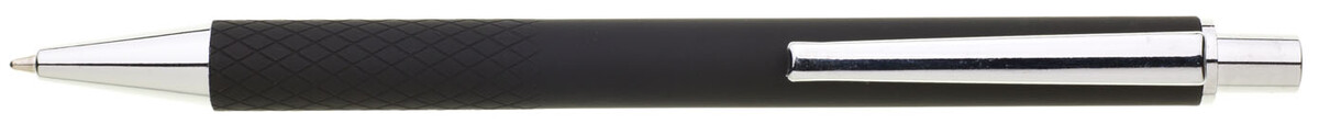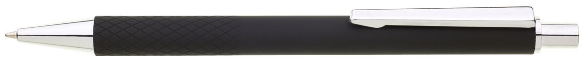 Elegantní propiska s černým pogumovaným tělem v moderním odstínu  a chromovými doplňky. Náplň X20 modře píšící. Kolekce DESIGN.