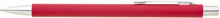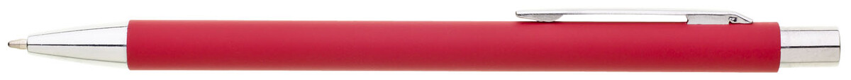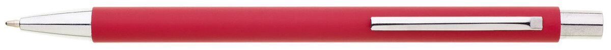 Tenká, jednoduchá propiska s červeným pogumovaným tělem a chromovými doplňky. Náplň X20, modře píšící.