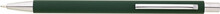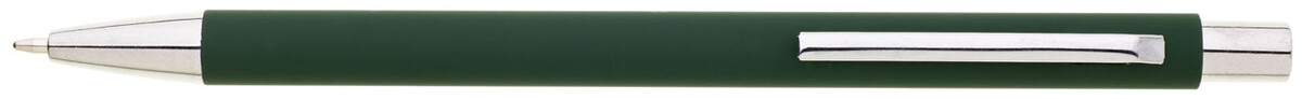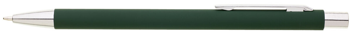 Tenká, jednoduchá propiska se zeleným pogumovaným tělem a chromovými doplňky. Náplň X20, modře píšící.