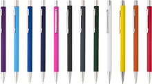 Tenká, jednoduchá propiska s šedým pogumovaným tělem a chromovými doplňky. Náplň X20, modře píšící.