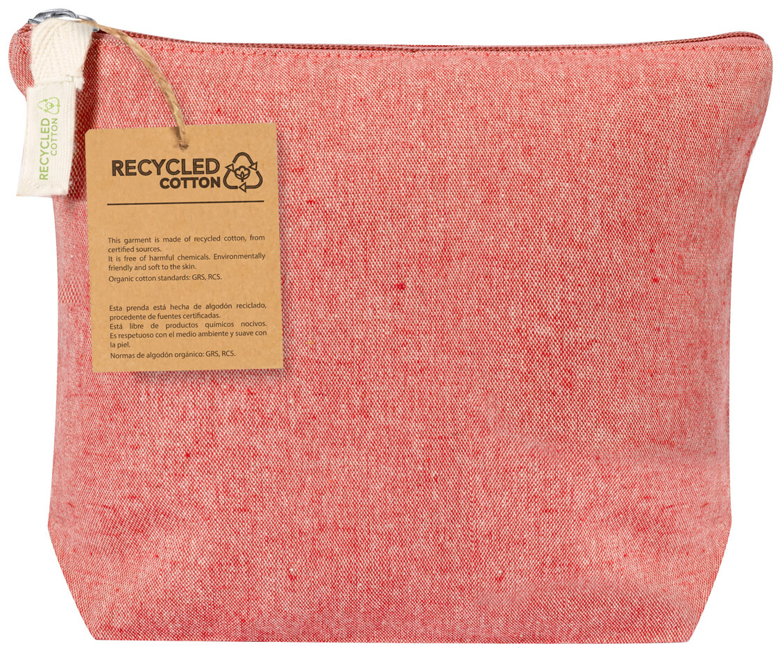 Kosmetická taštička na zip z recyklované bavlny. S výrazným štítkem z recyklované bavlny.