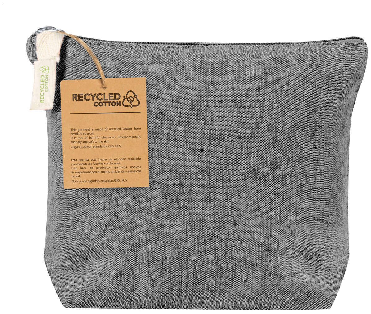 Kosmetická taštička na zip z recyklované bavlny. S výrazným štítkem z recyklované bavlny.