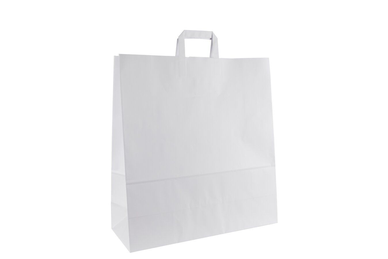 Bílá papírová taška s plochými uchy a rozměry 45 x 17 x 48 cm