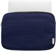 Plně polstrovaná taška na notebook z recyklovaného plátna s přihrádkou na zip a přední kapsou. Vhodné pro notebooky do 15". 70% recyklované bavlny a 30% RPET polyesteru. S výrazným štítkem z recyklované bavlny.