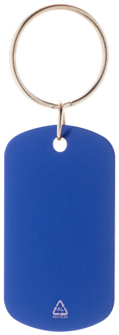 Přívěšek na klíče z recyklovaného hliníku s kovovým kroužkem.