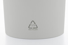 Dvoustěnný vakuově izolovaný termo hrnek z recyklované nerezové oceli s plastovým víčkem na pití z PS. 600 ml.