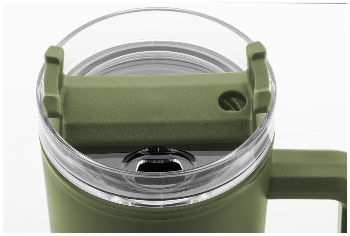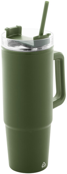 Dvoustěnný termo hrnek z recyklovaného PP plastu s plastovým víčkem na pití a brčkem. 900 ml.