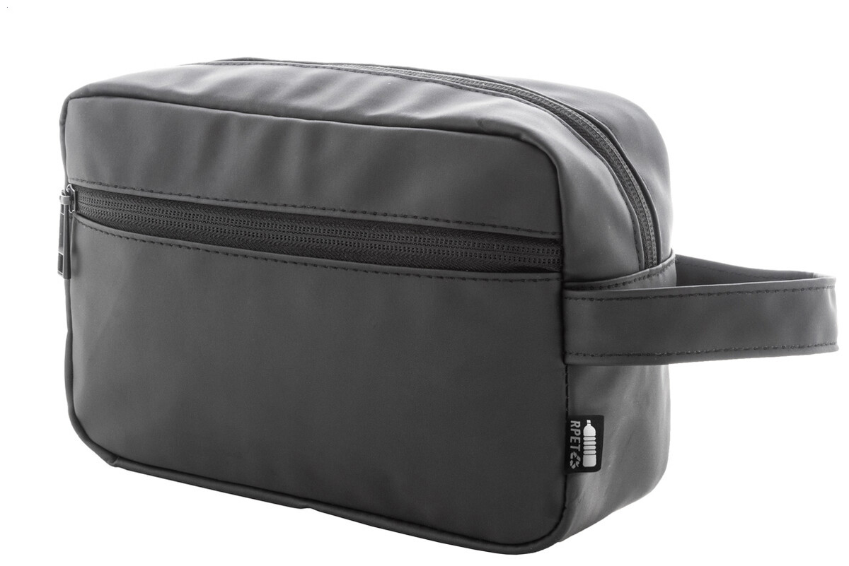 Kosmetická taštička z měkké recyklované PU kůže se dvěma přihrádkami na zip a uchem. S výrazným recyklovaným PU štítkem.