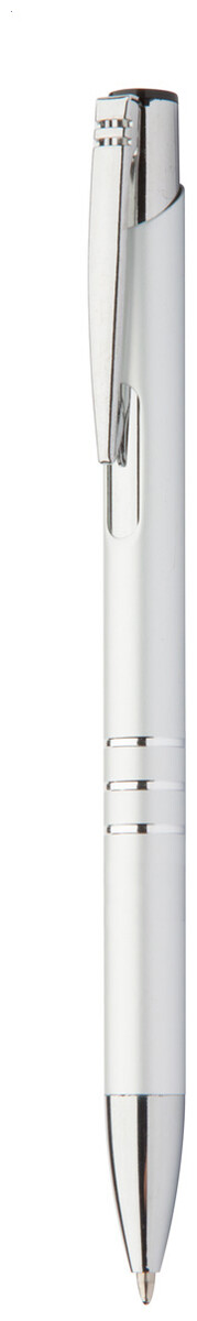 Kuličkové pero z recyklovaného hliníku s metalickým povrchem a modrou náplní.
