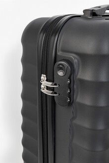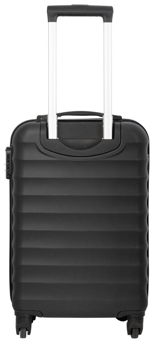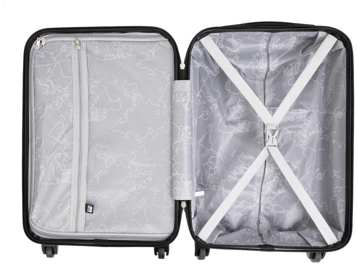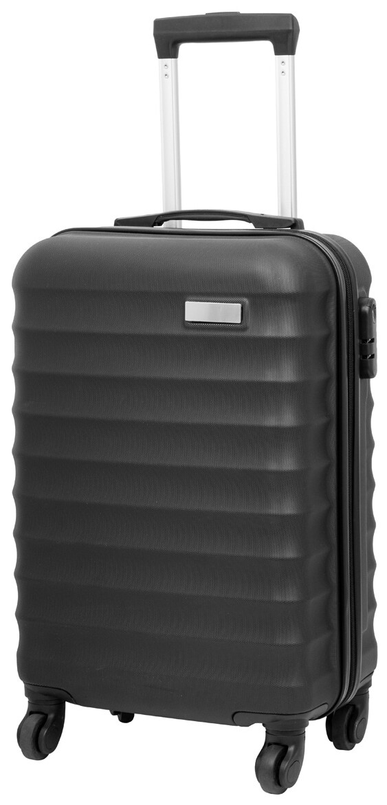 19palcový příruční kufr z tvrdého materiálu z RPET se 4 kolečky, teleskopickou rukojetí a kombinovaným zámkem TSA. S RPET vnitřní podšívkou a elastickými popruhy. S kovovou destičkou pro gravírování loga