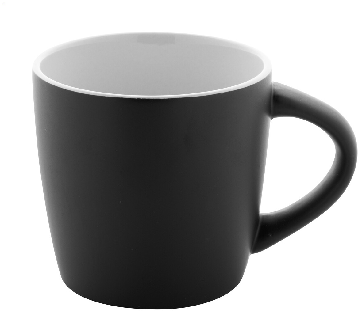 Vysoce kvalitní keramický hrnek s matnou černou vnější a lesklou vnitřní povrchovou úpravou, 300 ml. V kraftové papírové krabičce.