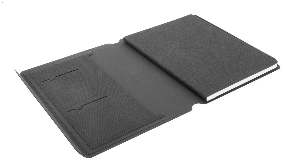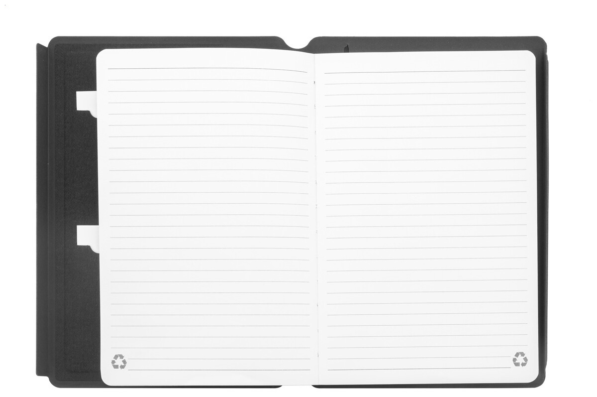 Sloha A5 na dokumenty z recyklované PU kůže s vnitřními kapsami na organizér a magnetickým zavíráním. Se 64 linkovanými listy poznámkového bloku z recyklovaného papíru.