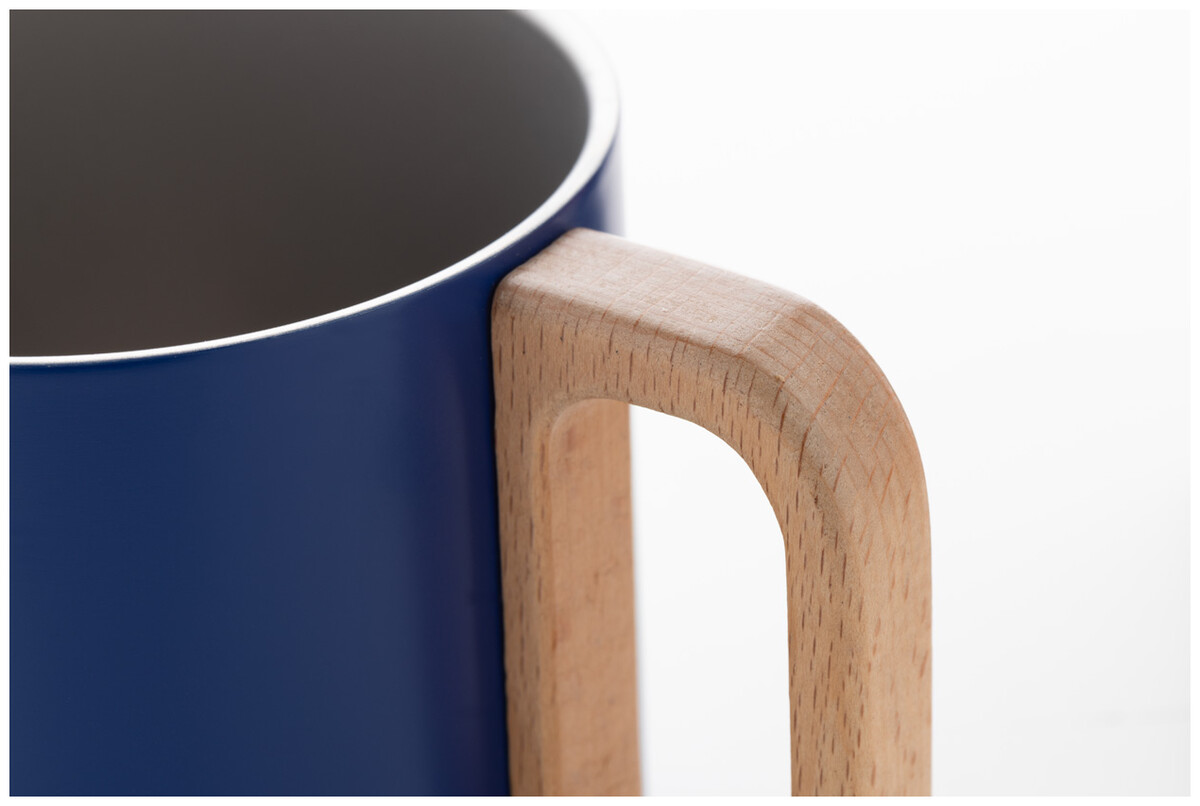 Dvoustěnný termo hrnek z recyklované nerezové oceli s dřevěným uchem. 350 ml.