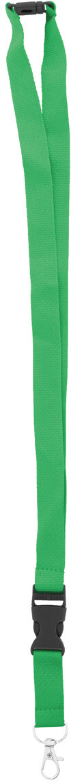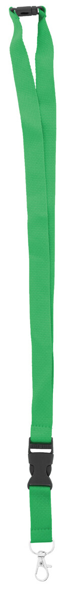 Polyesterový lanyard RPET s odnímatelnou kovovou karabinou a bezpečnostní přezkou.