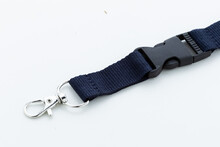Polyesterový lanyard RPET s odnímatelnou kovovou karabinou a bezpečnostní přezkou.