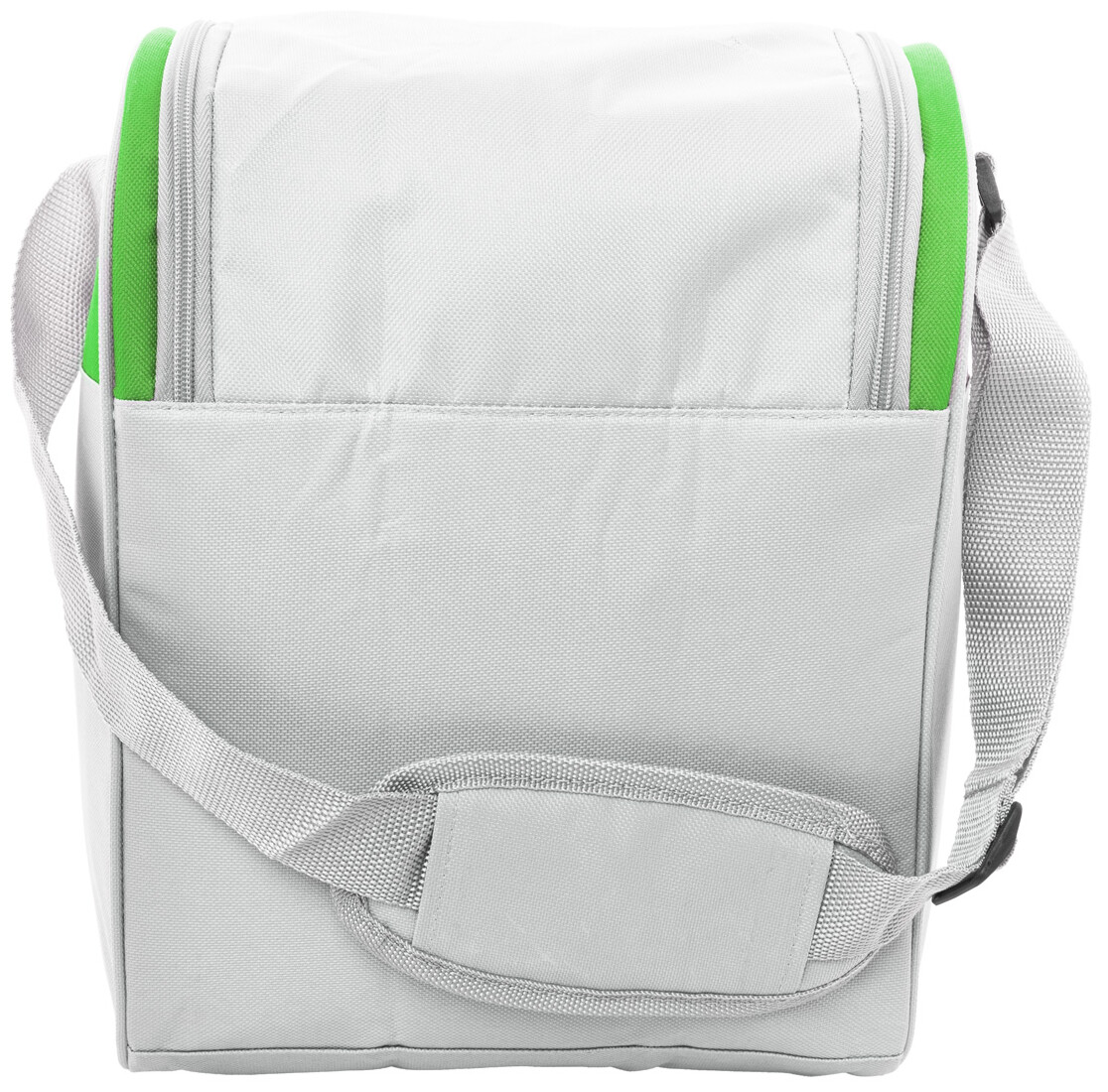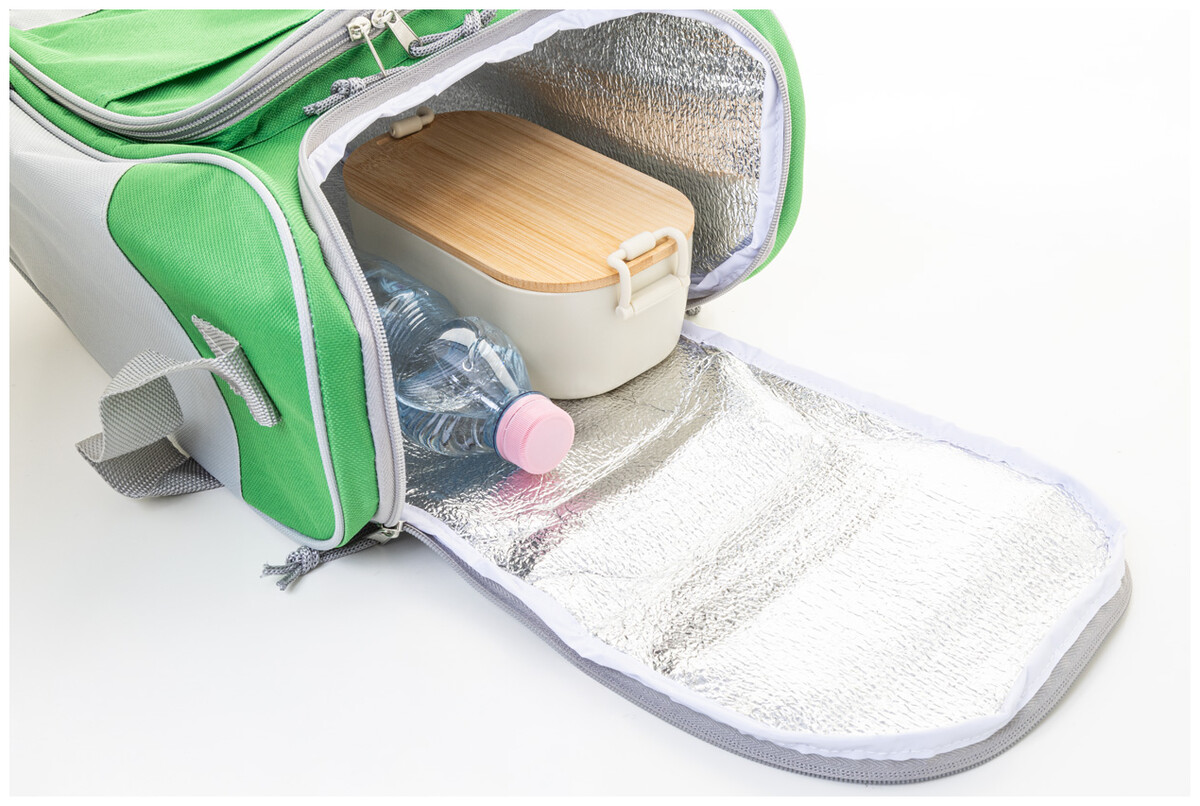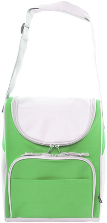 Chladicí taška RPET s hliníkovým polstrováním. Se 2 přihrádkami na zip, malou přední kapsou a nastavitelným ramenním popruhem. 600D RPET polyester s výrazným štítkem RPET.