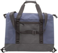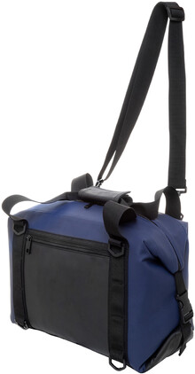 Skládací chladící taška na zip z měkké recyklované PU kůže s hliníkovou výplní a přední kapsou na zip. S bočními přezkami, držadly a nastavitelným ramenním popruhem. Tašku lze složit naplocho pro snadné skladování nebo ji během používání zajistit pomocí bočních výztuh.