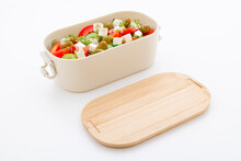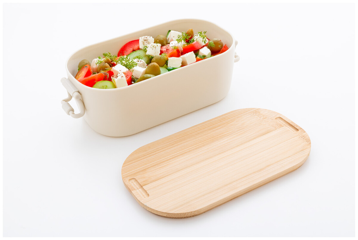 Box na jídlo z PP plastu s bambusovým víkem a uzávěrem na přezku, 1000 ml.