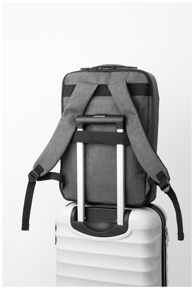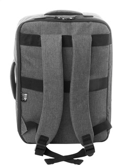 Dvojfunkční RPET batoh a taška na dokumenty s přihrádkou na zip a polstrovanou přihrádkou na notebook (15"). S popruhem na vozík, polstrovanými zády a ramenními popruhy. Polyester 300D RPET, s výrazným štítkem RPET.