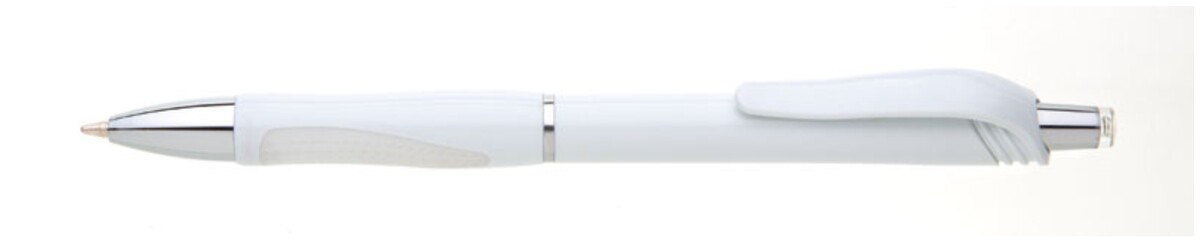 Bílá, plastová propiska s pochromovanými doplňky jako jsou klip, tělo cvakátka a proužek uprostřed těla tužky. Grip je částečně pogumovaný v barvě tužky, stejně jako klip a vrchní část cvakátka. Náplň X20, hrot 1mm.