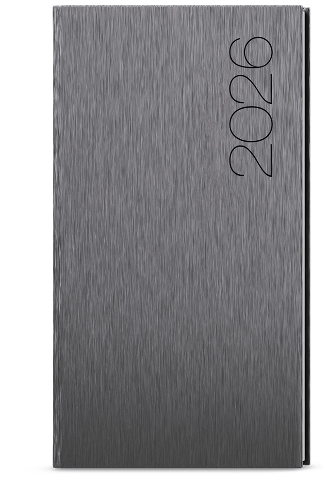 Kapesní týdenní diář v lesklé šedé barvě se strukturovaným povrchem. Moderní doplněk do každé kapsy. Diář má velký prostor pro poznámky a plánování.