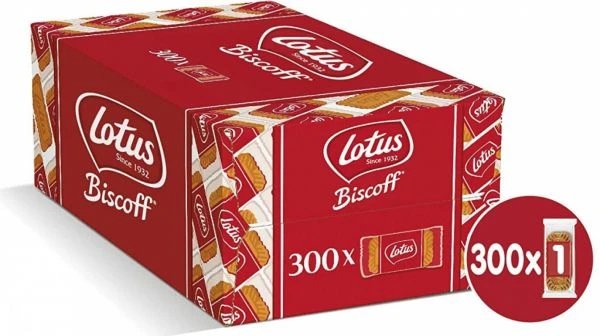 Karamelové sušenky Lotus Biscoff Welcome pack – ideální volba pro malé občerstvení během dne nebo jako stylová nabídka pro návštěvy. Balení obsahuje 300 jednotlivě balených porcí po 6,25 g.