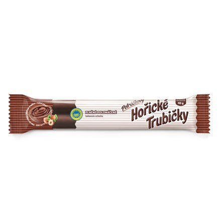 Hořické trubičky – Oplatky plněné kakaovým krémem polomáčené v kakaové polevě 40 g – Oblíbená sladká pochoutka s lahodným kakaovým krémem a jemnou polevou pro chvíle mlsání.