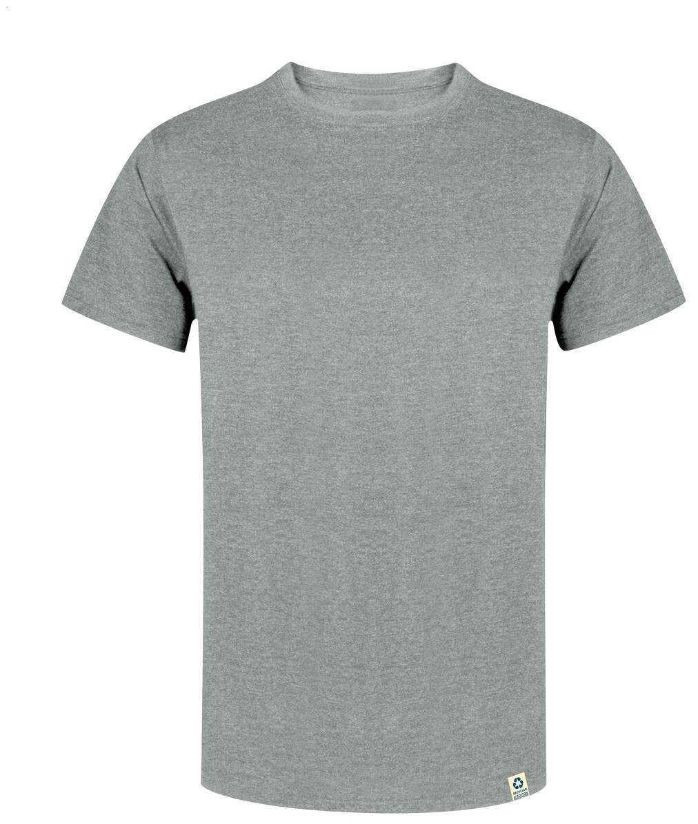 Tričko s kulatým výstřihem ze 60 % recyklované bavlny a 40 % RPET polyesteru single jersey, 150 g/m2.