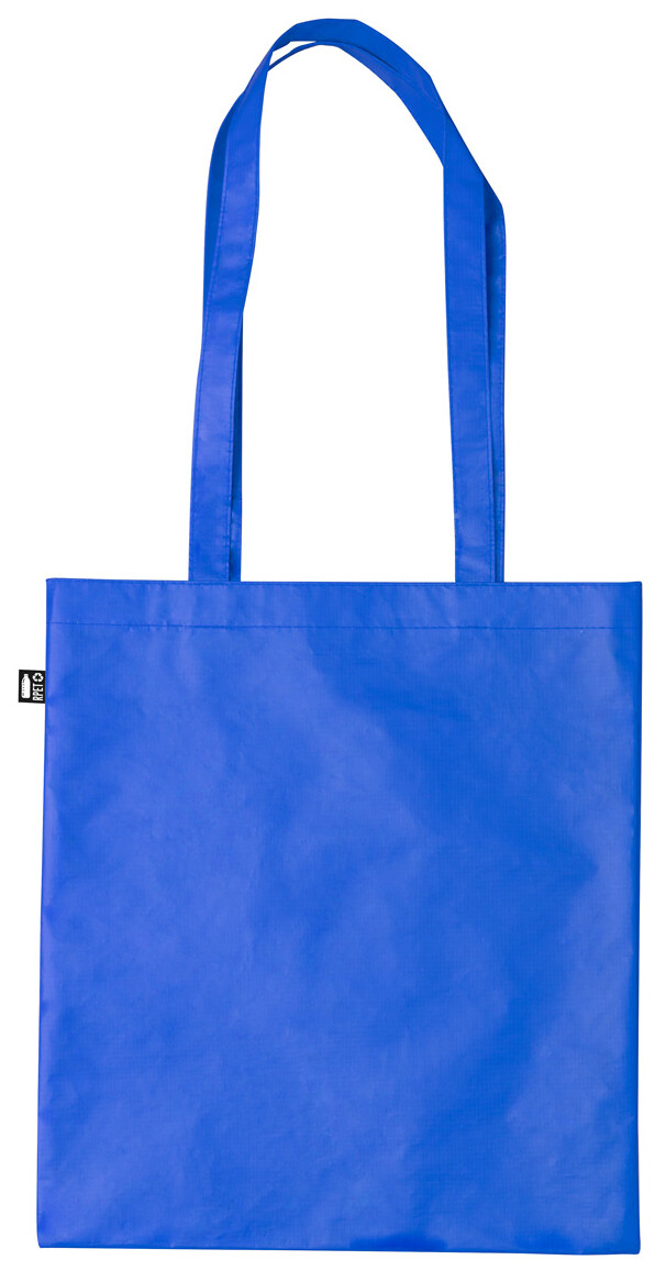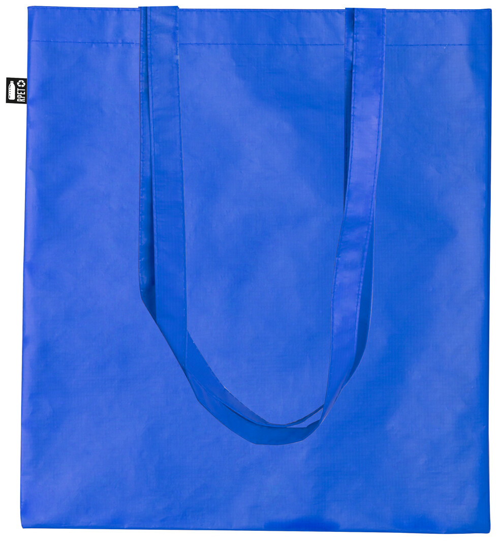 Polaminovaná recyklovaná RPET nákupní taška s dlouhými uchy, 105 g/m2, s etiketou s označením RPET.