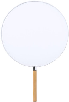 Polyesterový ruční ventilátor s bambusovou rukojetí.
