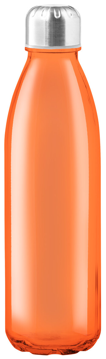 Průhledná skleněná láhev s nerezovým uzávěrem, 650 ml. Nevhodné pro sycené nápoje.