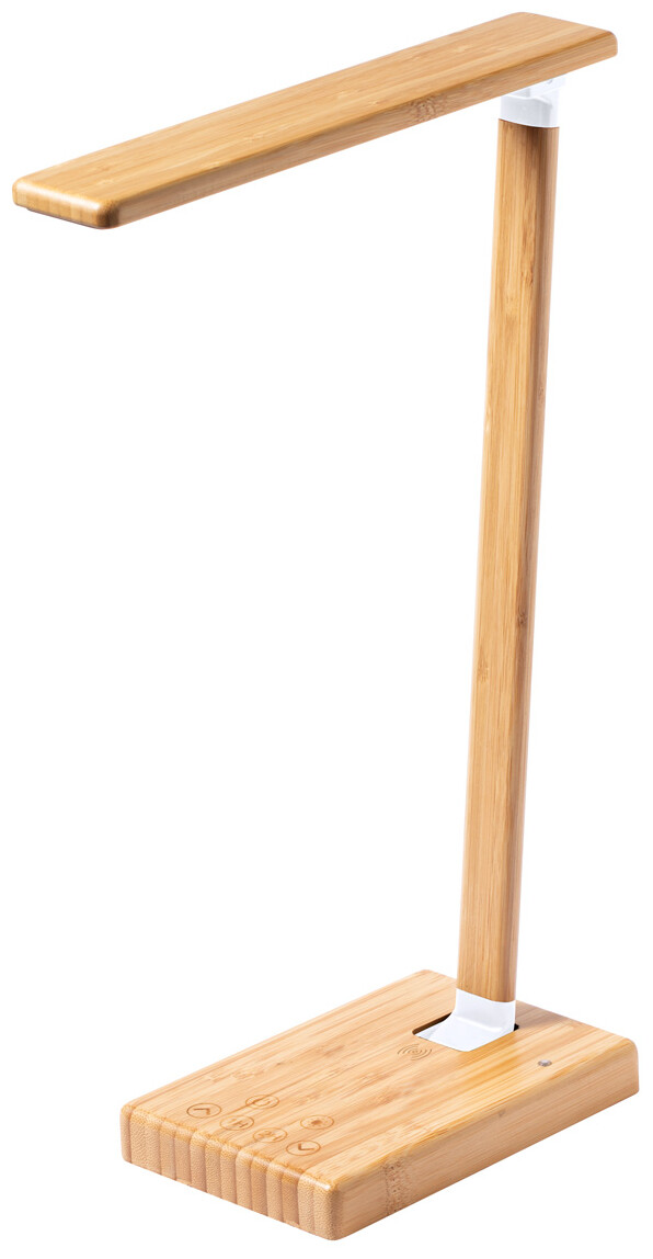 Bambusová multifunkční stolní lampa s 25 LED, nastavitelným jasem a 1/2 hodinovým časovačem. S vestavěnou bezdrátovou rychlonabíječkou (10W) a portem USB pro nabíjení 2 zařízení současně (1 bezdrátově a 1 přes kabel). Včetně USB nabíjecího kabelu.
