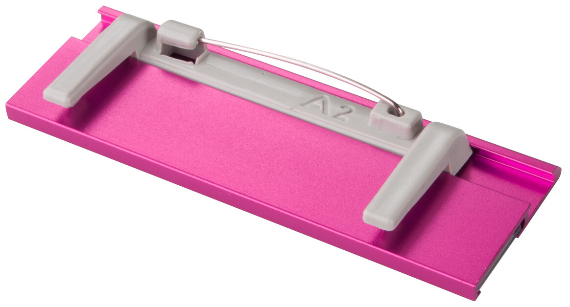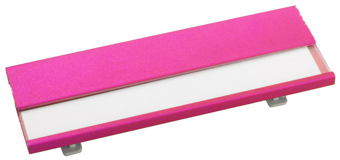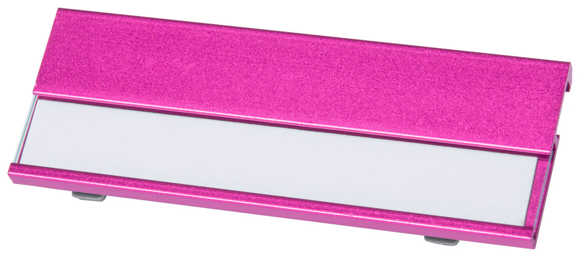 Jmenovka z hliníku s vyměnitelnými papírky.