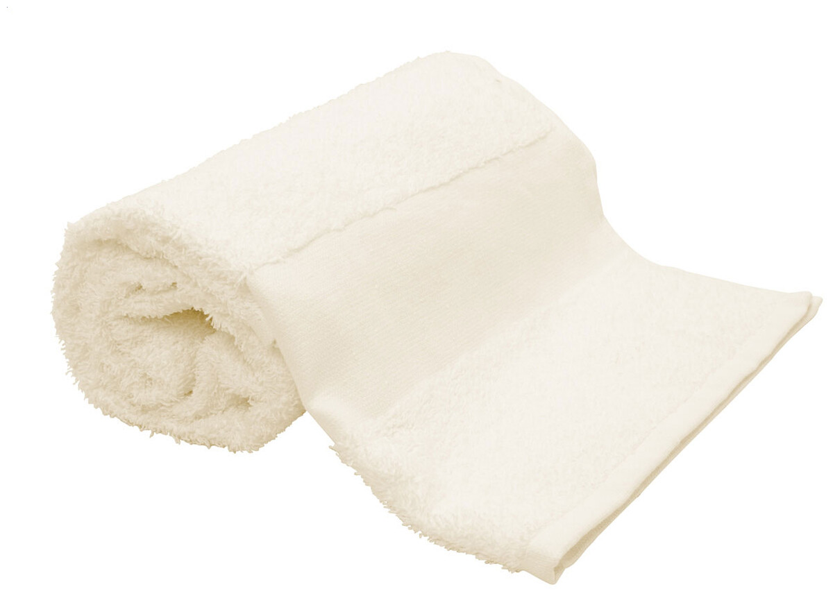 Bavlněný froté ručník s poutkem na zavěšení a potiskovatelnou bordurou. 100% bavlna, 360 g/m2.