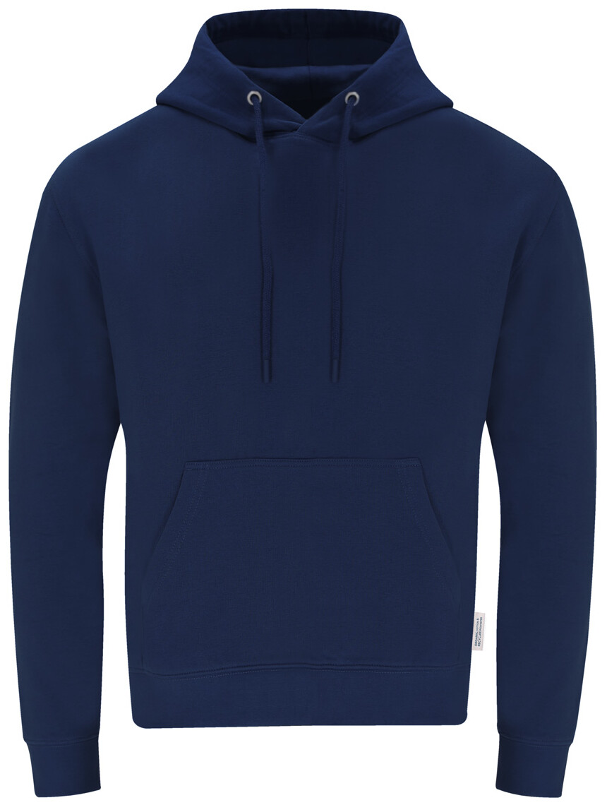 Mikina s kapucí a přední kapsou ze 60% organické bavlny a 40% RPET polyesteru, 280 g/m2.