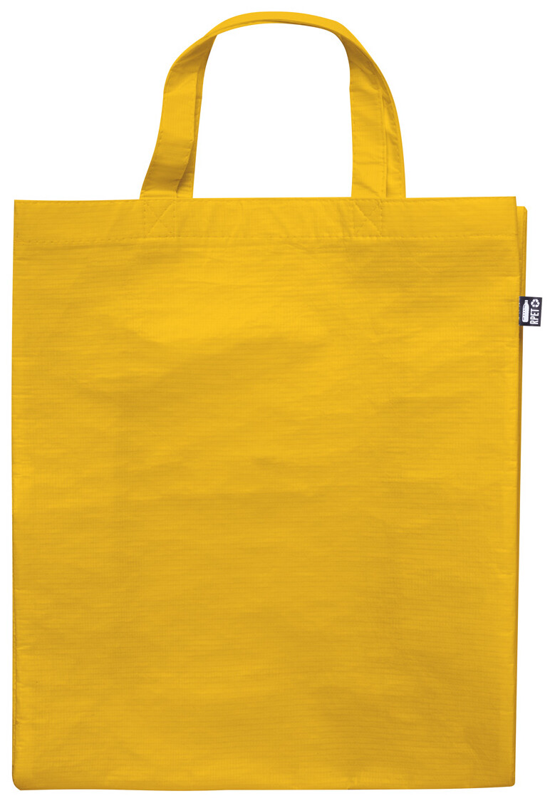 Nákupní taška z polaminovaného polyesteru RPET s klínem a krátkými uchy, 110 g/m2. S výrazným štítkem RPET.
