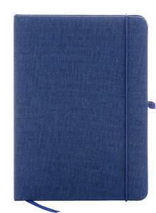 Blok A5 potažený polyesterem 300D RPET s 80 čistými listy. S gumovým páskem, záložkou a držákem na pero.
