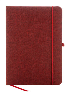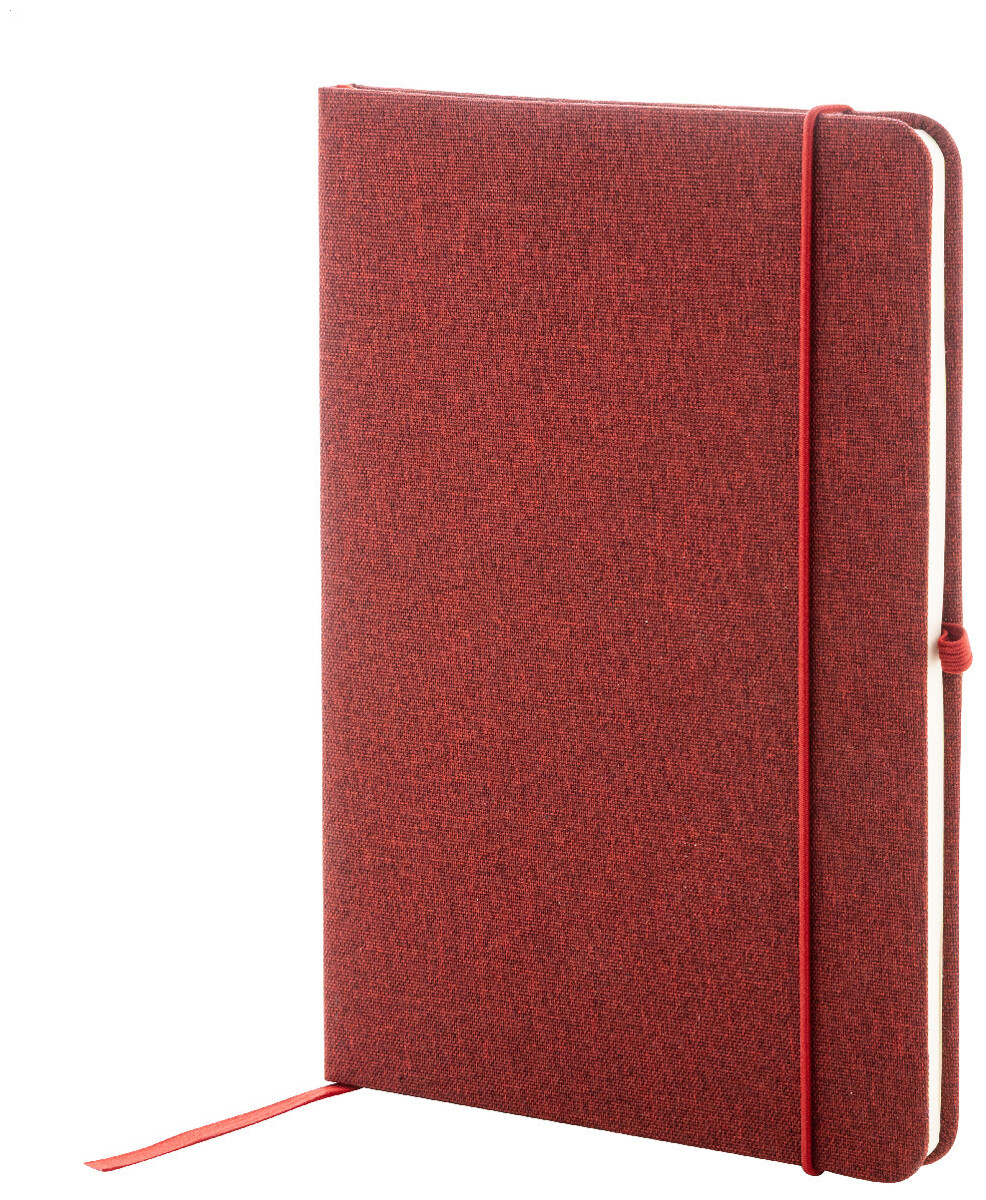 Blok A5 potažený polyesterem 300D RPET s 80 čistými listy. S gumovým páskem, záložkou a držákem na pero.