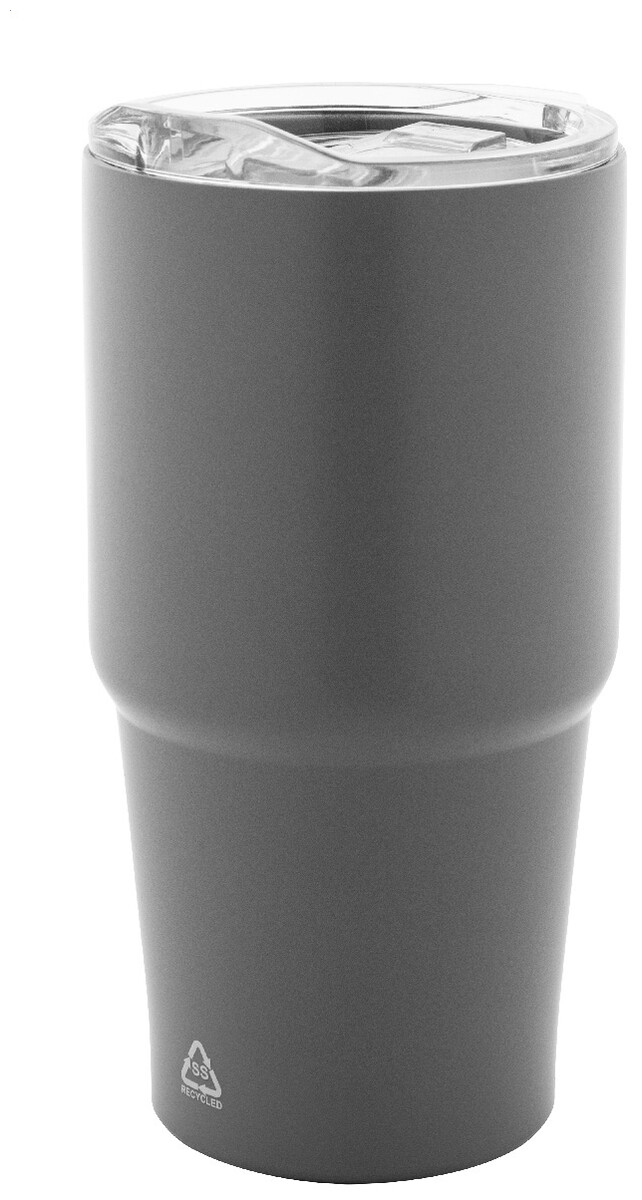 Dvoustěnný vakuově izolovaný termohrnek z recyklované nerezové oceli s víčkem z polystyrenového plastu. 600 ml.