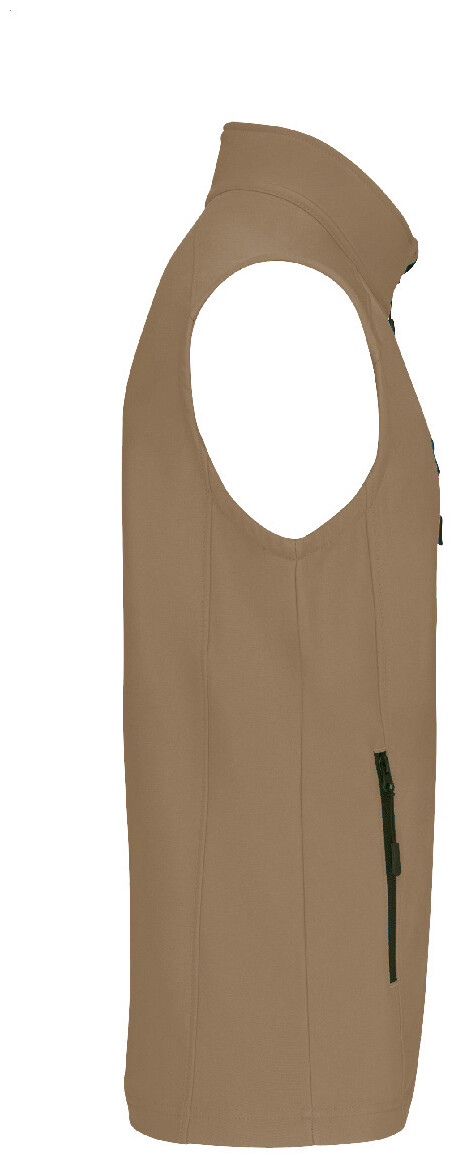 Třívrstvá, prodyšná, větru a voděodolná softshellová vesta na tělo se zipem a náprsními a bočními kapsami na zip. S prodyšnou střední vrstvou a vnitřní vrstvou z micro polar fleecu. Materiál: 95 % polyester a 5 % elastan, 300 g/m2. Výrobek značky Kariban.