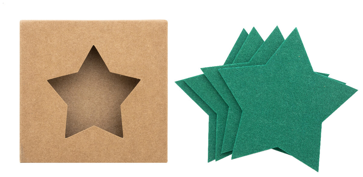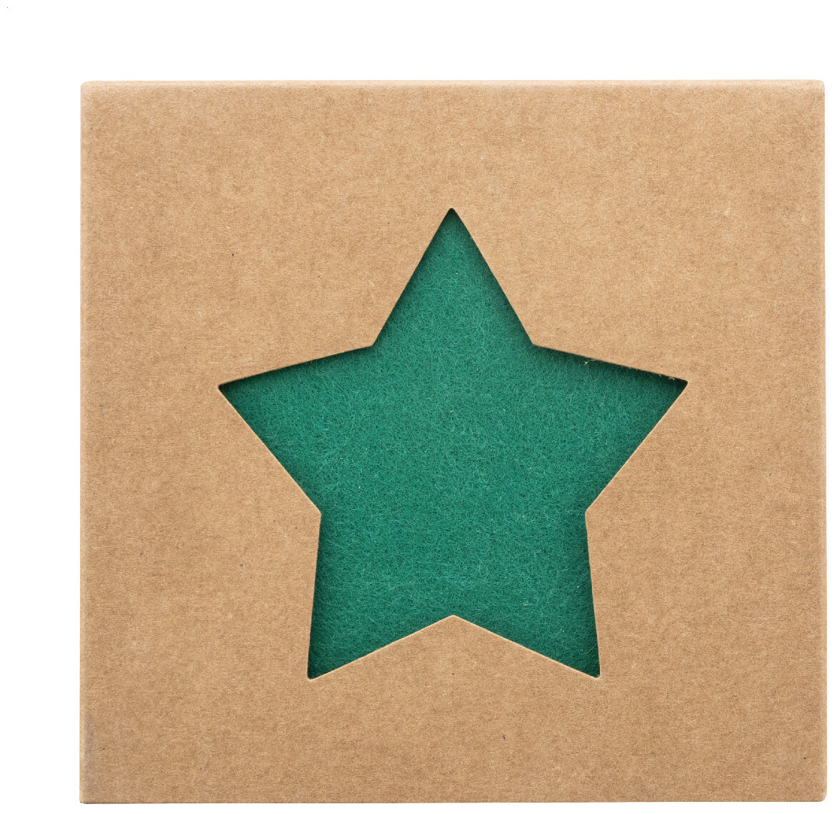 Sada 4 vánočních podtácků z plsti RPET ve tvaru hvězdy. V krabičce z kraftového papíru.
