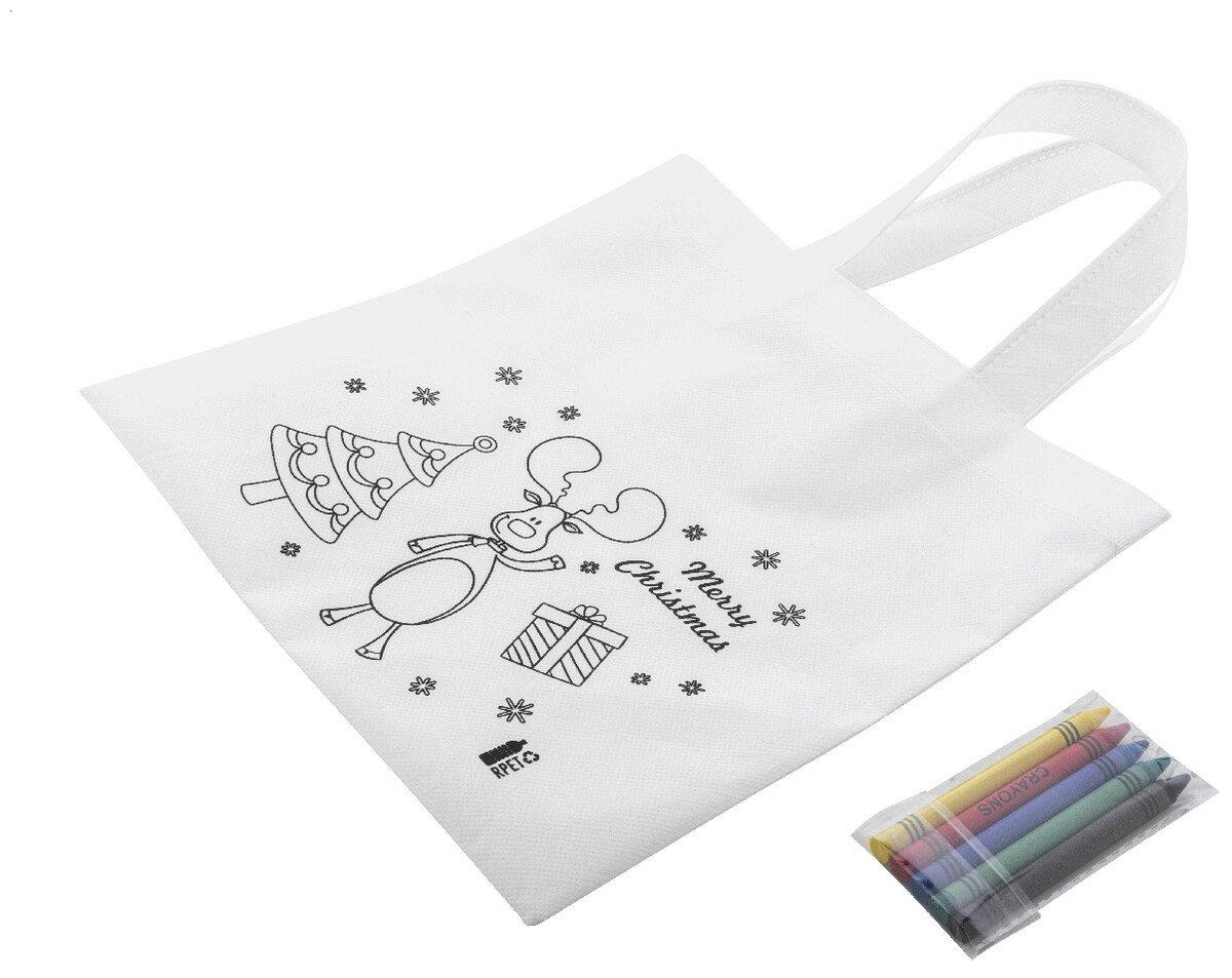 Vánoční dárková taška z netkané RPET tkaniny na vybarvování s 5 voskovkami.