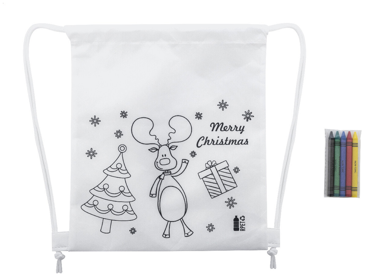Vánoční vak na vybarvování se stahovací šňůrkou z netkané RPET tkaniny s 5 voskovkami.