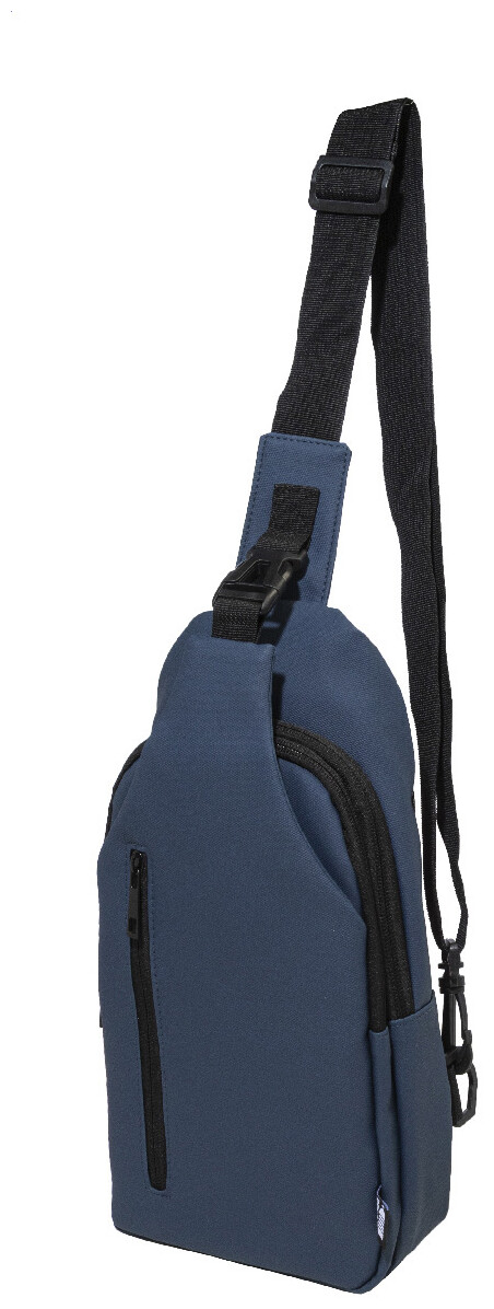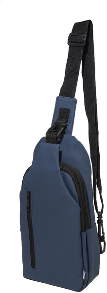 Voděodolná RPET crossbody taška na zavěšení přes rameno s kapsami na zip, zapínáním na přezku a polstrovanými zády. S nastavitelným ramenním popruhem vybaveným polohami na levé a pravé straně. Polyester RPET 600D potažený PU, s výraznou etiketou RPET.