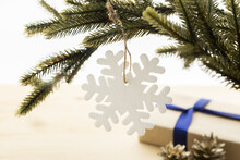 Vánoční ozdoba na stromeček z RPET plsti s jutovou šňůrkou.