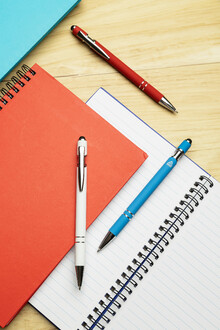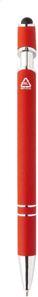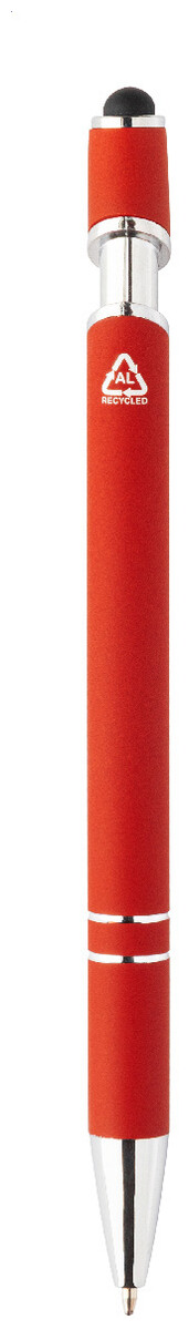 Kuličkové pero a pero pro dotykovou obrazovku z recyklovaného hliníku s pogumovaným tělem a chromovanými detaily. S modrou náplní.
