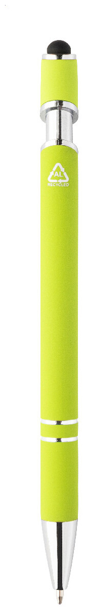 Kuličkové pero a pero pro dotykovou obrazovku z recyklovaného hliníku s pogumovaným tělem a chromovanými detaily. S modrou náplní.
