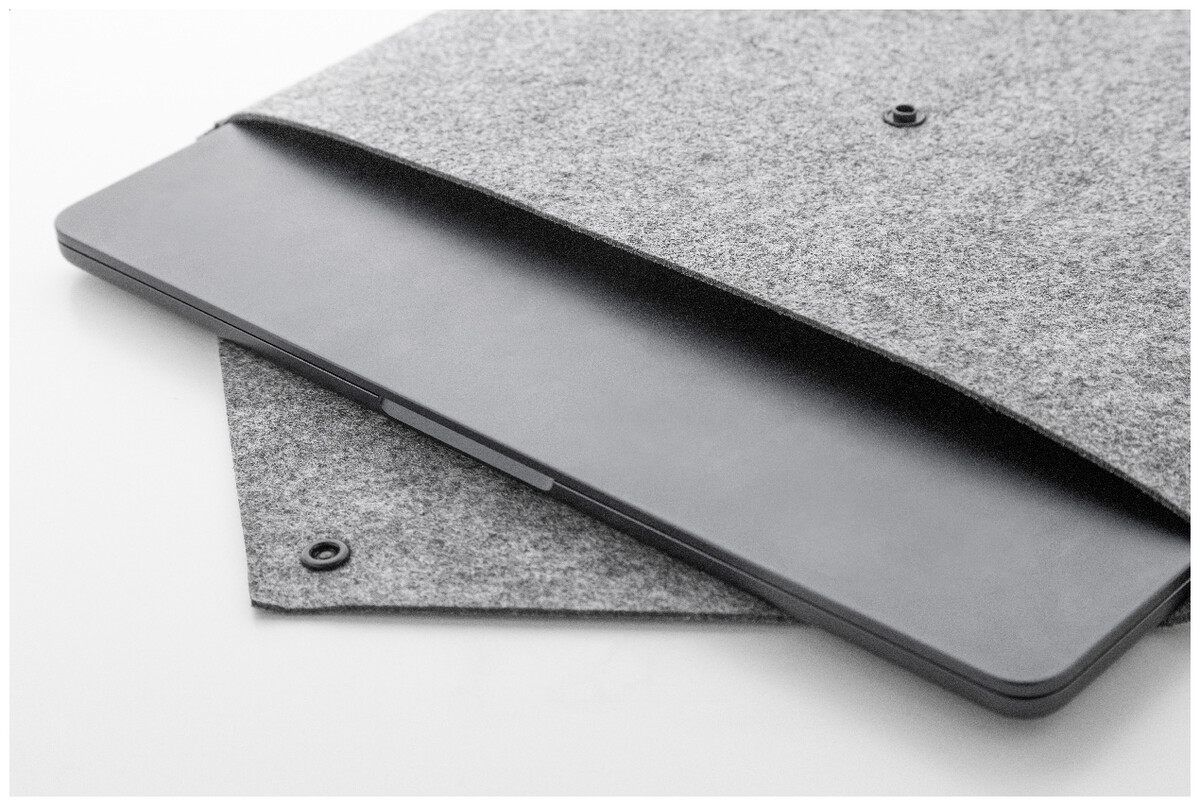 Taška na dokumenty nebo pouzdro na notebook z RPET plsti s knoflíkovým zapínáním. Vhodné pro notebooky do 13". S výrazným štítkem RPET.